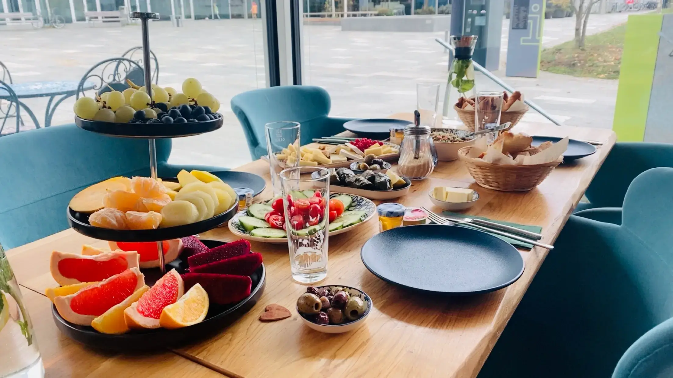 Der Tisch füllt sich nach und nach mit feinen Mezze, frischem Brot, Gebäck, Käse, warmen Komponenten sowie salzigen und süssen Köstlichkeiten. Alles wird frisch für Sie zubereitet, à discrétion serviert und lädt zum Teilen, Verweilen und Geniessen ein.